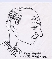 Falava do nosso reencontro. Foi aí que o Mestre puxou pela caneta e, na toalha de papel que protegia a mesa, desenhou a minha caricatura. Guardei religiosamente esse pedaço de talento.